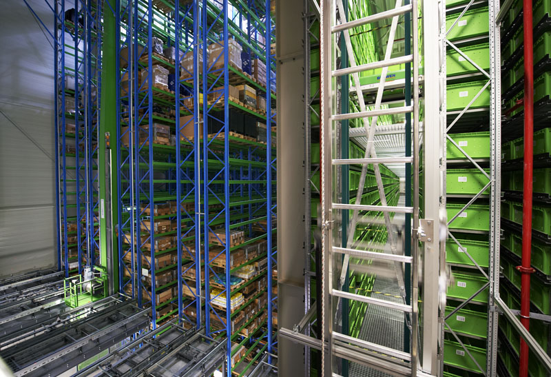 Hochregallager aus fußeingespannten Stahlrahmen mit Fachwerkriegeln
