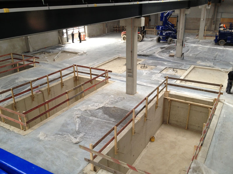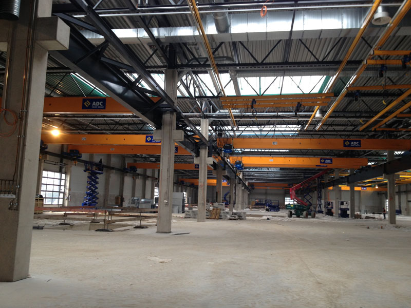 Ca. 100 Brücken- und Deckenlaufkrane; Kranbahnträger mit Spannweiten bis zu 18 Metern; Erdbebengebiet; ca. 30 Gruben und Maschinenfundamente