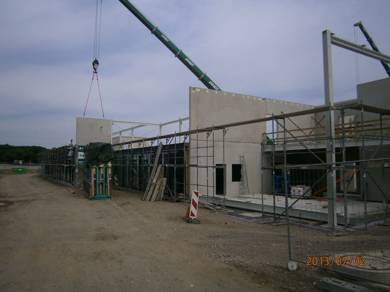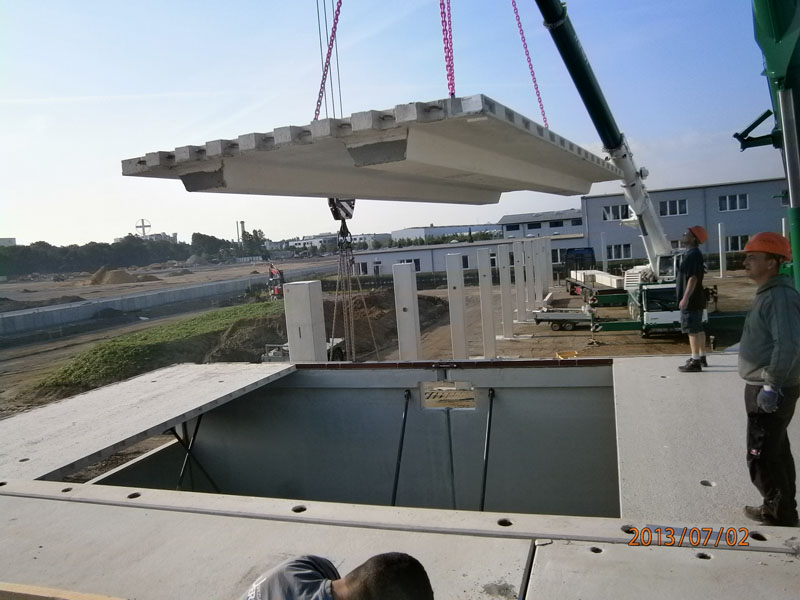 Mischbauweise ( vorgespannte TT-Platten, Stahlverbundträger, Stahlstützen, BFT-Wände)